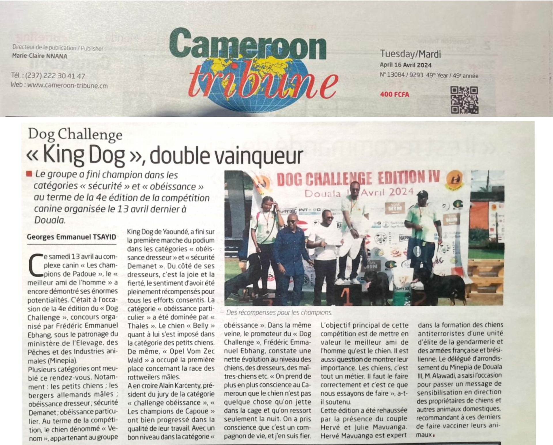 (Cameroun Tribune) Dog Challenge - La 3ieme Edition a livré ses champions